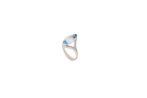 “Marquise” ring with aquamarine and brilliant-cut diamonds in white gold