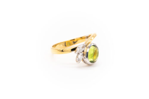 “Marquise” ring with peridot and brilliant-cut diamonds in medium gold