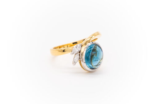 “La Fleur” ring with blue tourmaline in yellow gold