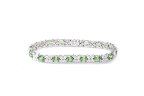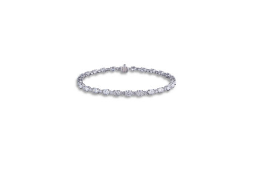 Tennis bracelet with oval diamonds and brilliant-cut diamonds in white gold