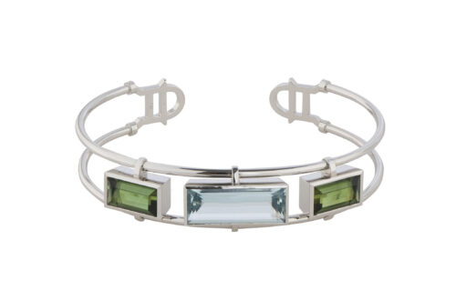 “Signature” bangle with aquamarine and tourmalines in white gold