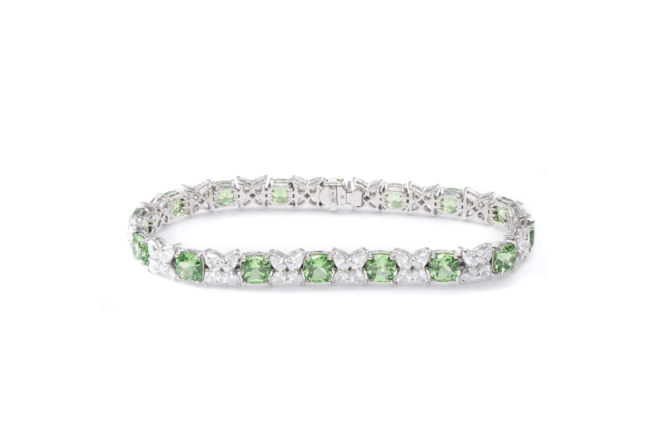Atelier Heldwein Tsavorite Diamond Bracelet Ref. No.: 262.1900.01.0 21.3g 750/000 White Gold 64x Diamonds F/G VS total 6.04ct. 16x Tsavorite total 13,12ct. Length 18.5cm