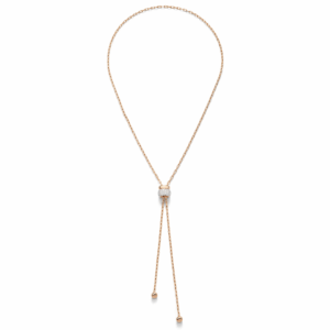 Die neuen Schmuckstücke interpretieren die unverkennbare Ästhetik des Hauses auf zeitgemäße Weise. Besonders das Lariat-Collier zieht alle Blicke auf sich: Ein zentraler Anhänger, inspiriert von zwei verbundenen Iconica-Ringen – einer mit Diamanten besetzt, der andere in Gold gehalten – symbolisiert die Balance zwischen Ausdruckskraft und schlichter Eleganz. Ein flexibles Schiebeelement gleitet mühelos entlang der Kette und erlaubt eine Vielzahl individueller Tragevarianten – ein Statement für stilvolle Wandelbarkeit.