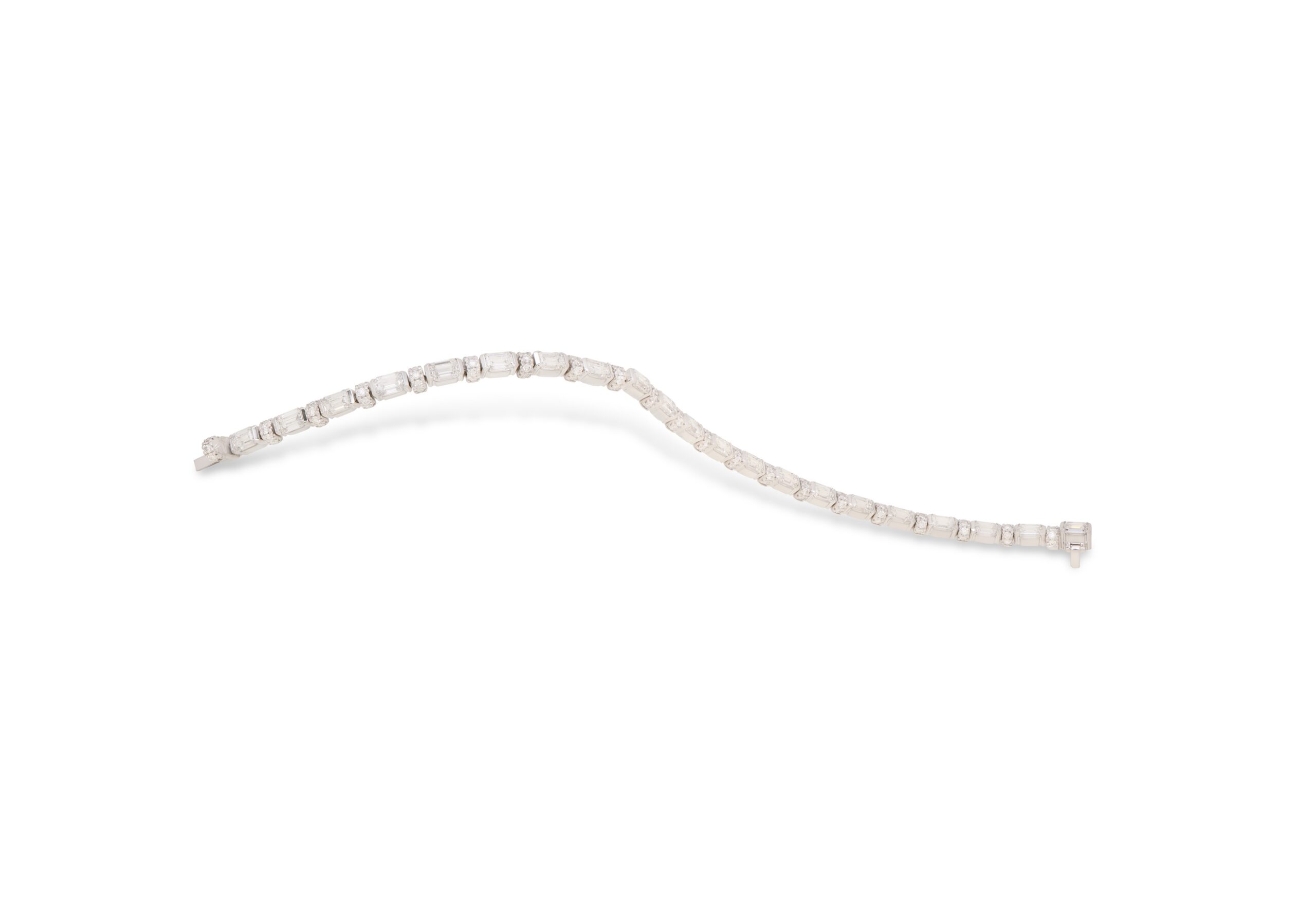 Atelier Heldwein Tennisarmband 13,85g 750/000 Weißgold 21x Diamant G/VS Emerald Cut 7,05ct. Diamanten G/SI Brillant 1,28ct. Länge 17,5cm