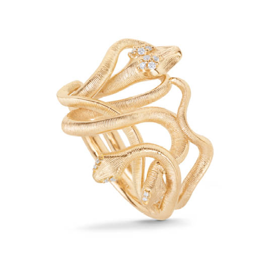 Als Ole Lynggaard 1969 seine erste Schlange entwarf war er inspiriert von den Schätzen, die er wenige Jahre zuvor im Ägyptischen Museum in Kairo gesehen hatte. Über fünf Jahrzehnte später spiegeln diese markanten Designs Ole Lynggaards modernen Stil, seine zeitlose Eleganz und souveräne Handwerkskunst wider.